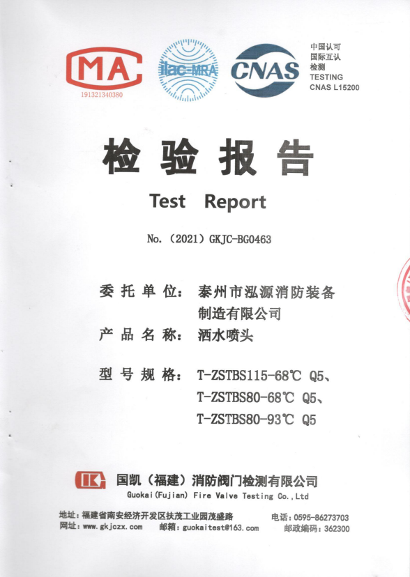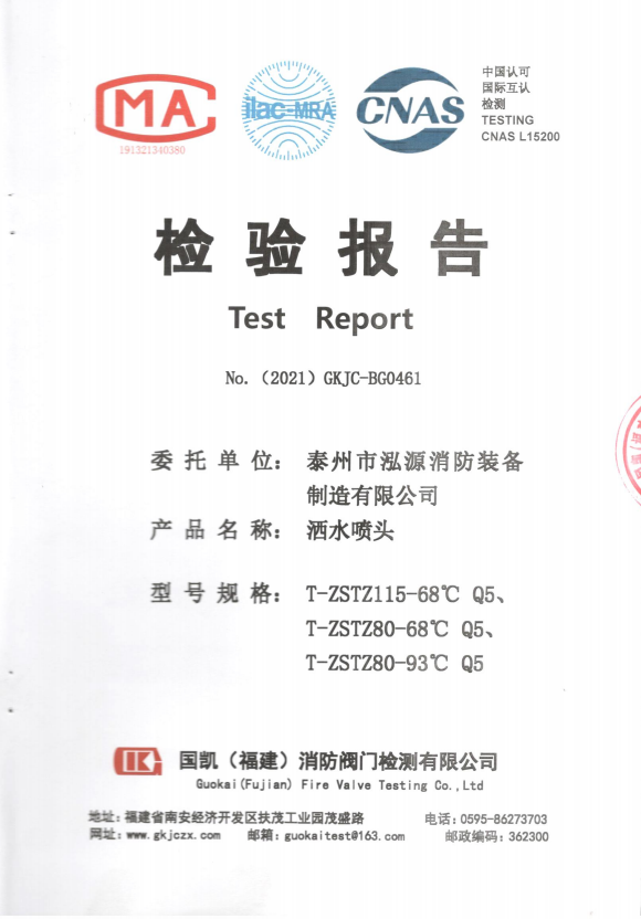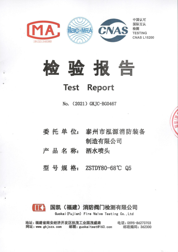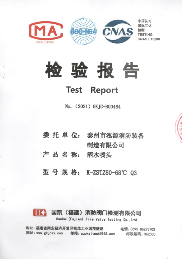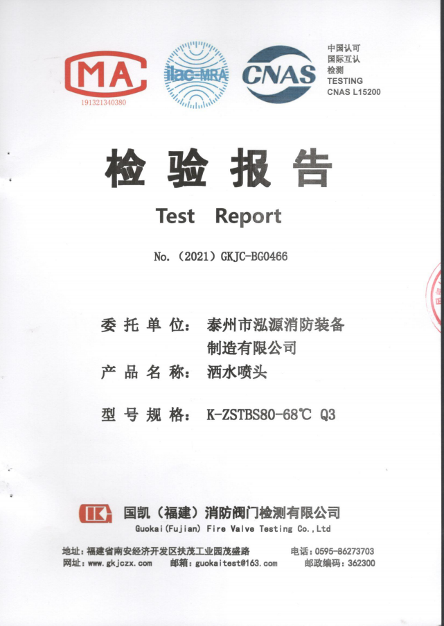 啟真灑水噴頭ZSTDY80-68°C Q5檢驗(yàn)報(bào)告