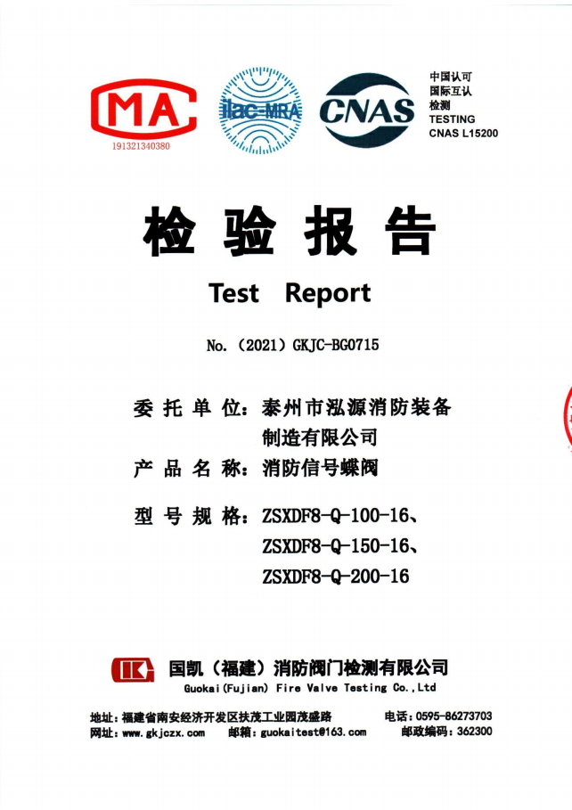 啟真溝槽消防信號(hào)蝶閥ZSXDF8-Q檢驗(yàn)報(bào)告