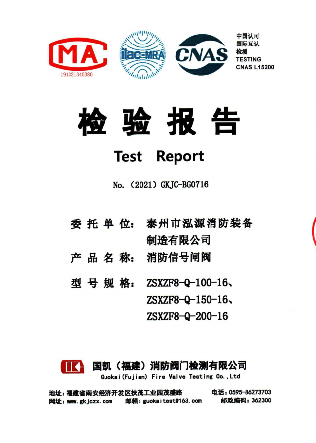 啟真溝槽消防信號(hào)閘閥ZSXZF8-Q檢驗(yàn)報(bào)告